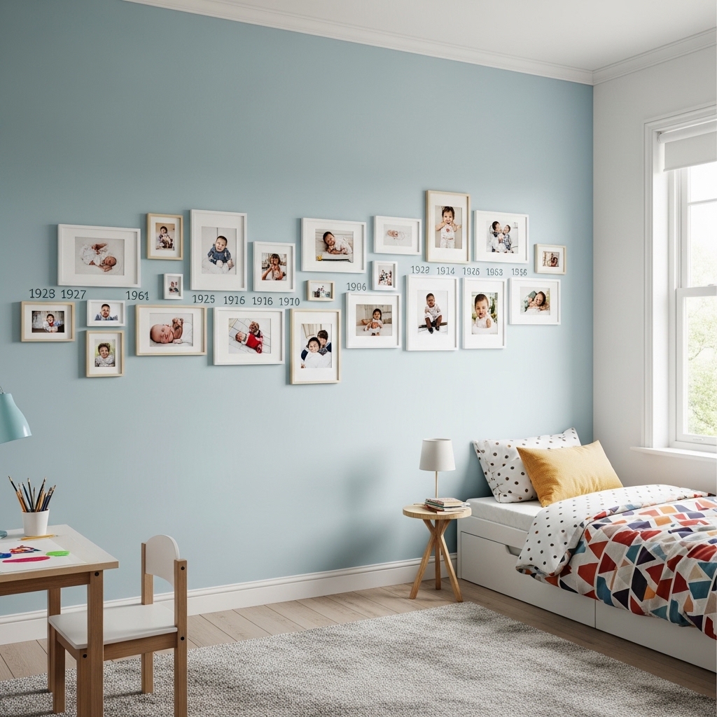 Generic art is fine. A photo timeline makes your child the star of their own room.