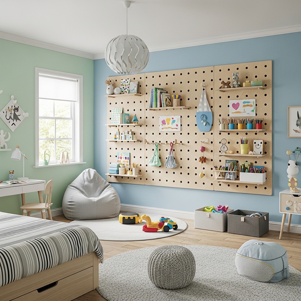 22. Install a Wall-Mounted Pegboard for Toy Storage