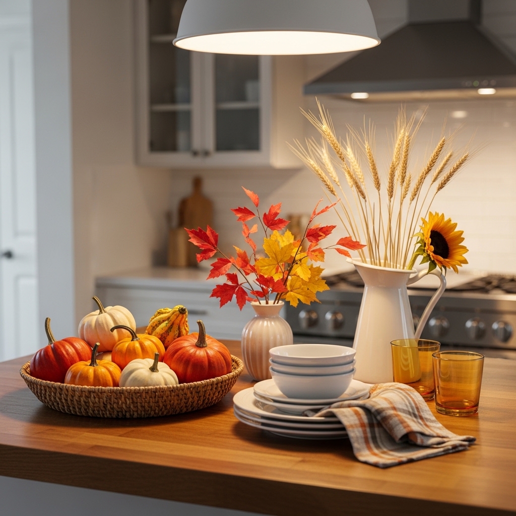 Rotating small seasonal accents keeps your kitchen island decor feeling updated year-round. Think lemons in summer, pumpkins in fall, or evergreen sprigs in winter.