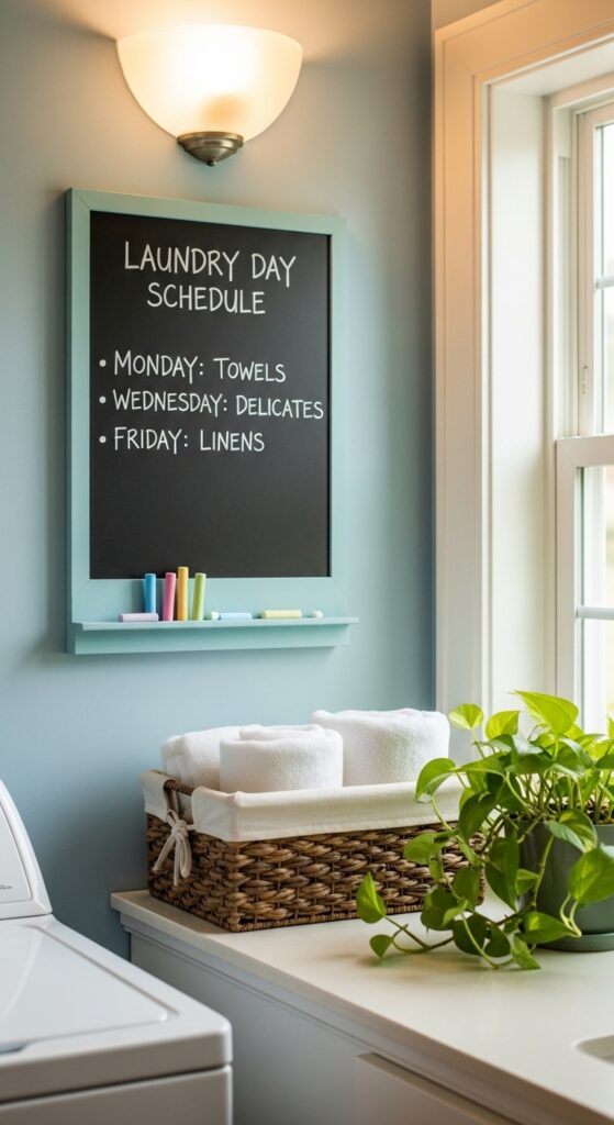 Add a small chalkboard for notes and reminders that come to you while you fold laundry.