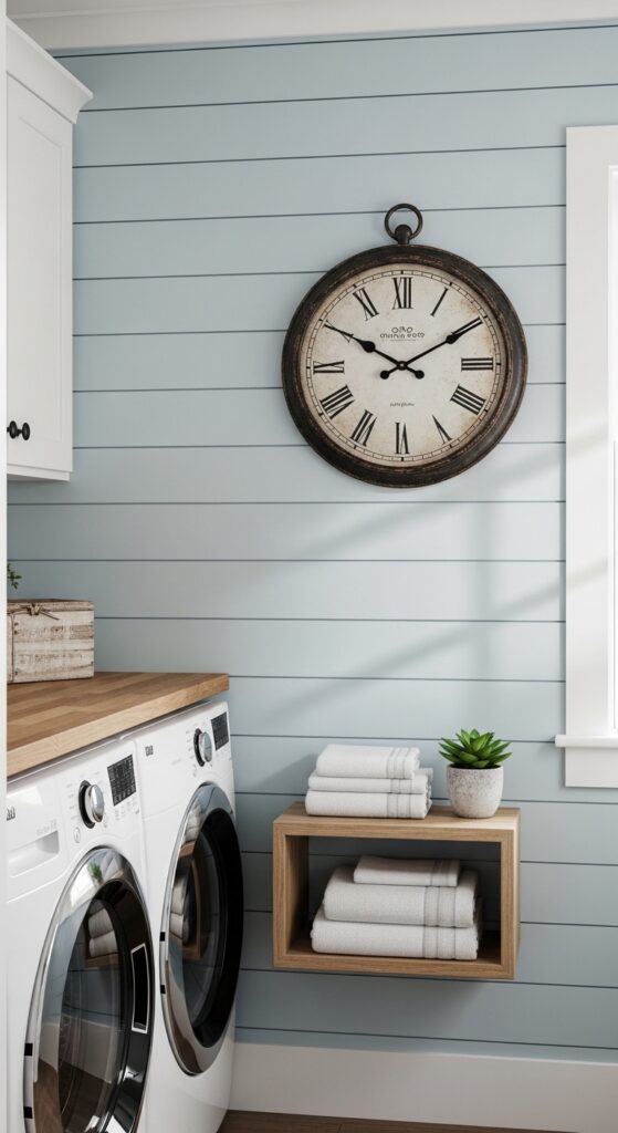 Hang a vintage-style clock on the wall where you can see it from your washer and dryer.