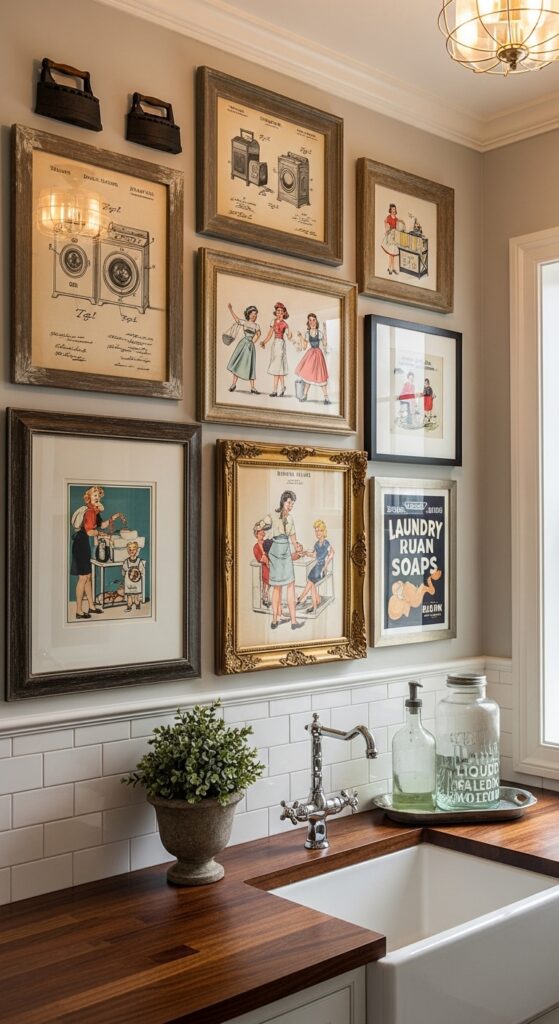 9. Hang a Gallery Wall of Vintage Laundry Art