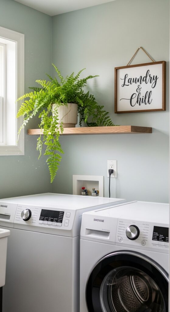 Your laundry room does not have to feel like a utility closet. A plant proves otherwise immediately.