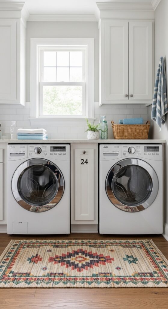 Washable rugs are essential for laundry rooms. Spills happen constantly. You need something you can actually clean.