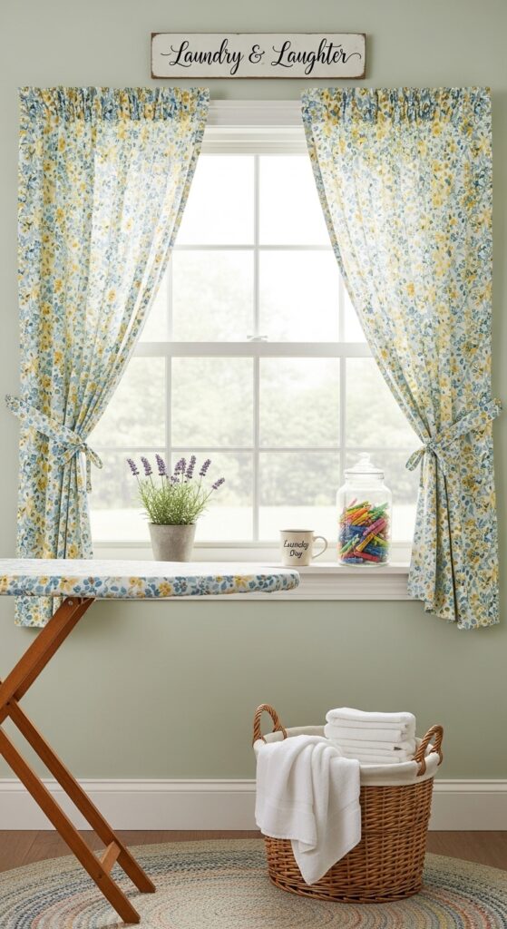 Mistake to Avoid: Do not use floor-length curtains in a laundry room. Long curtains collect lint and get caught in appliance doors.