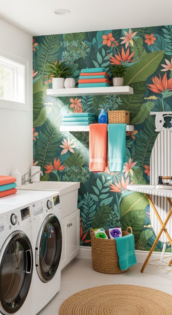 Mistake to Avoid: Do not wallpaper all four walls in a small laundry room. One accent wall is plenty. Four walls feel overwhelming.