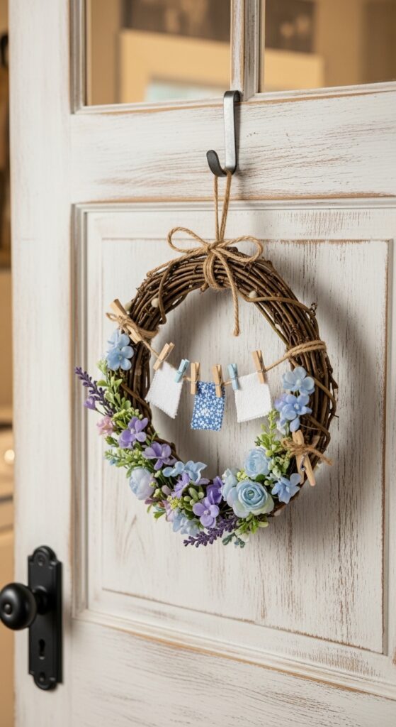 Pro Tip: Choose a wreath made from fabric or dried flowers. Fresh wreaths wilt quickly in the humidity of a laundry room.
