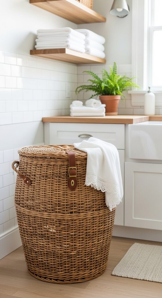 Use a vintage laundry basket as decor instead of hiding your ugly plastic one in a closet.