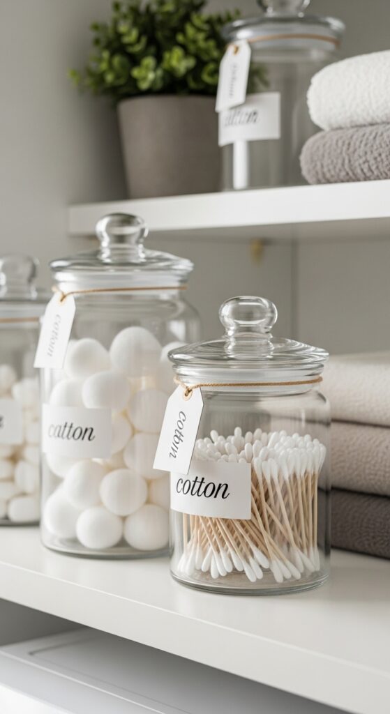 18. Use Glass Canisters for Cotton Balls and Swabs