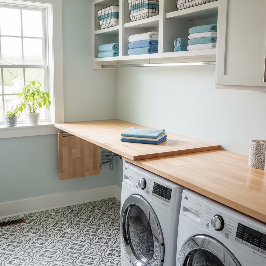 Mistake to Avoid: Do not use pine without sealing it. Pine absorbs moisture and warps within months of laundry room humidity.