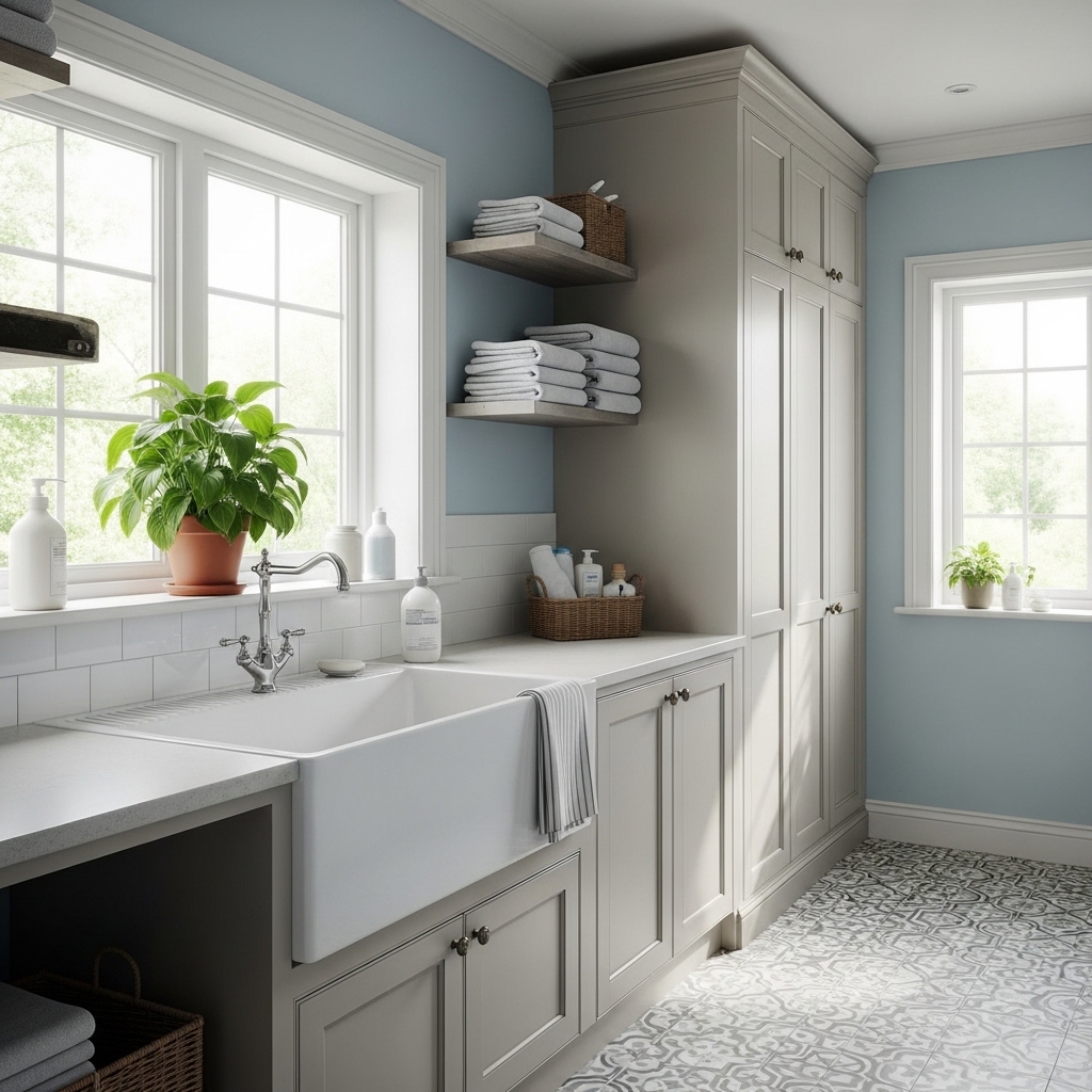 Most laundry rooms are afterthoughts. Beige walls. Broken cabinets. A folding area that never gets used.