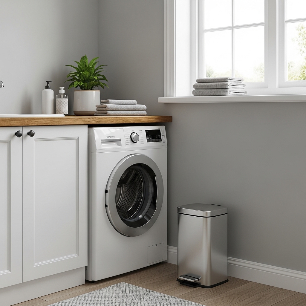 Mistake to Avoid: Do not use a trash can without a lid in a laundry room. Lint and dust float out of open cans and settle on your clothes.