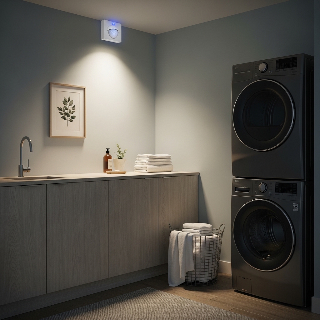 Mistake to Avoid: Do not install the sensor where your washer or dryer motion triggers it. Position the sensor away from moving appliances.