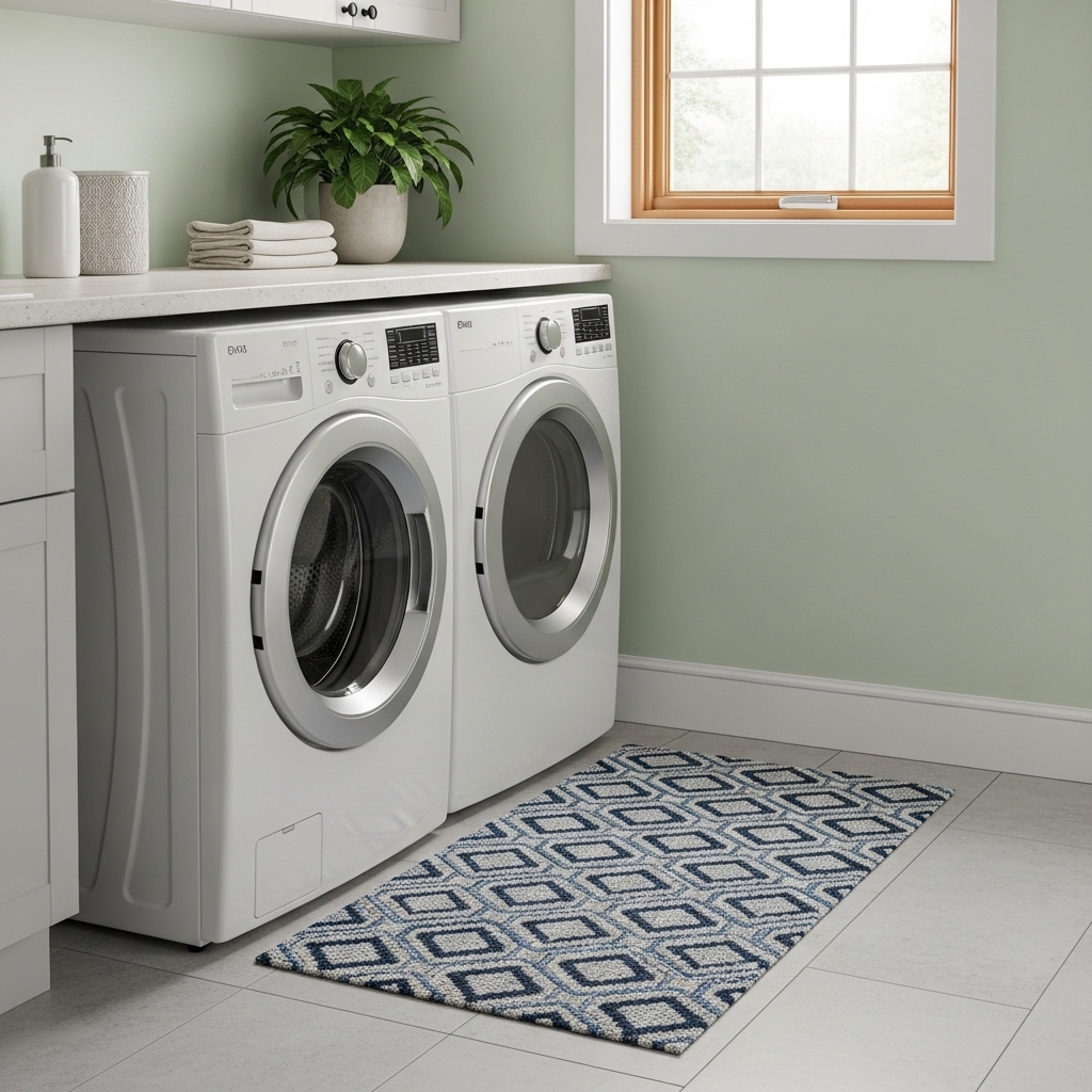 Washable rugs are essential for laundry rooms. Spills happen. You need something you can clean.
