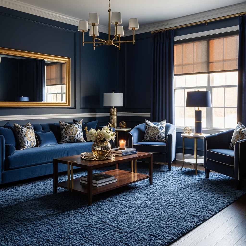 Navy adds depth and sophistication while creating a strong focal point. It helps anchor the space visually.