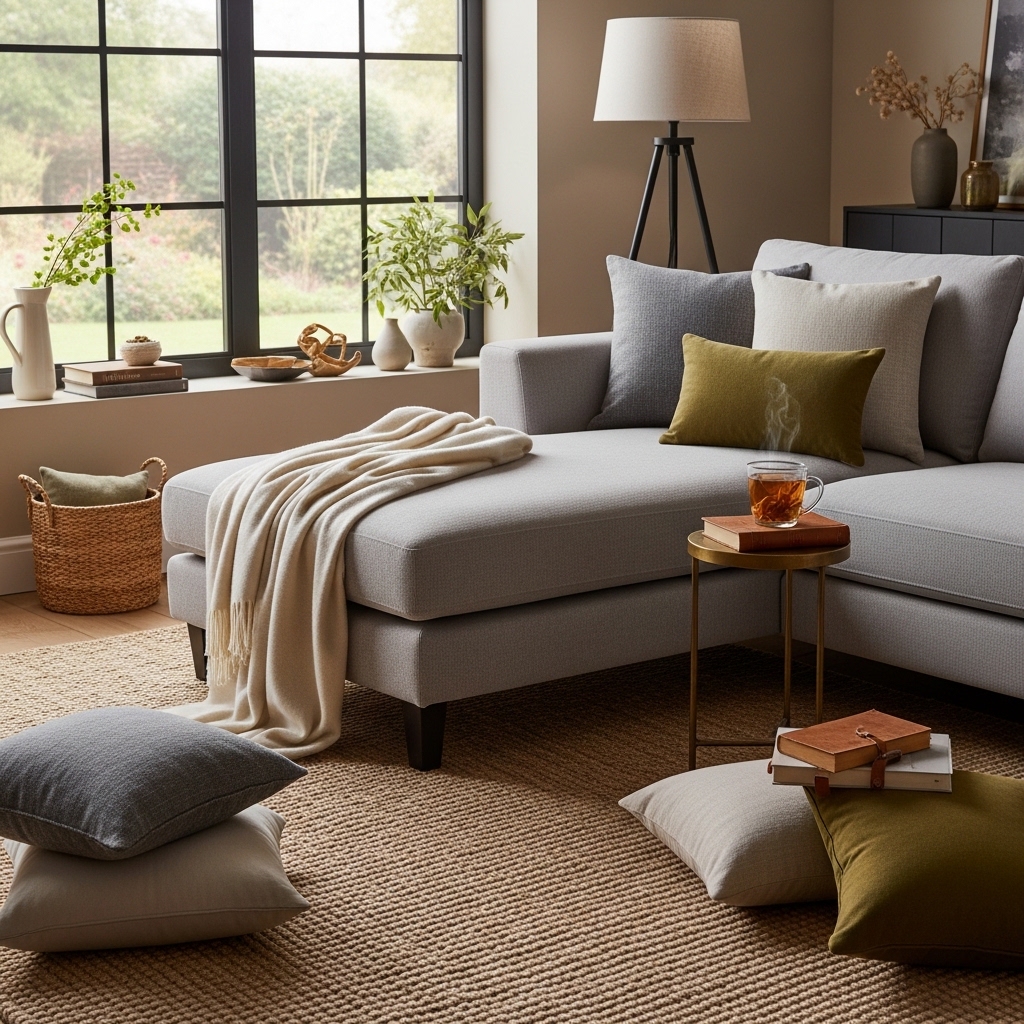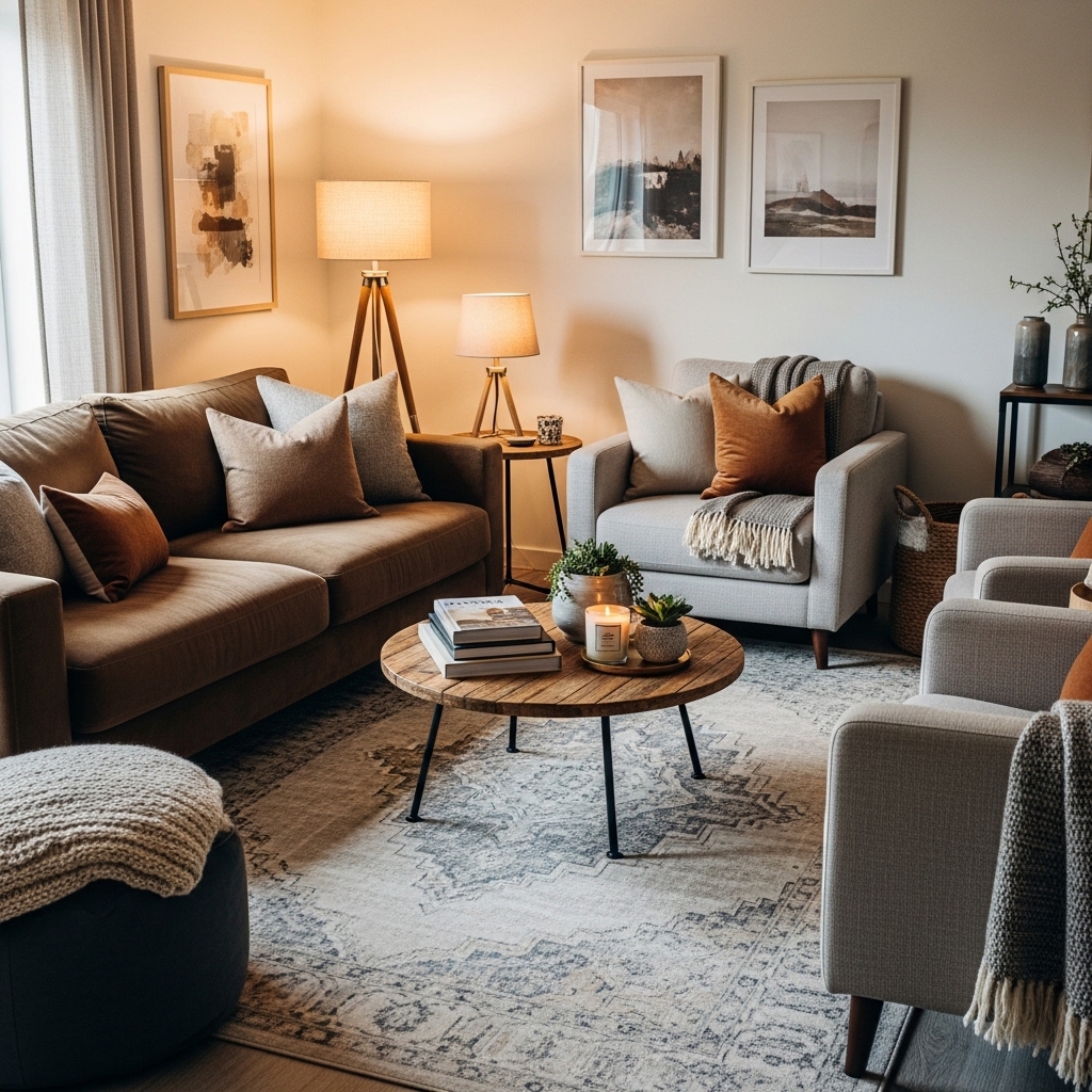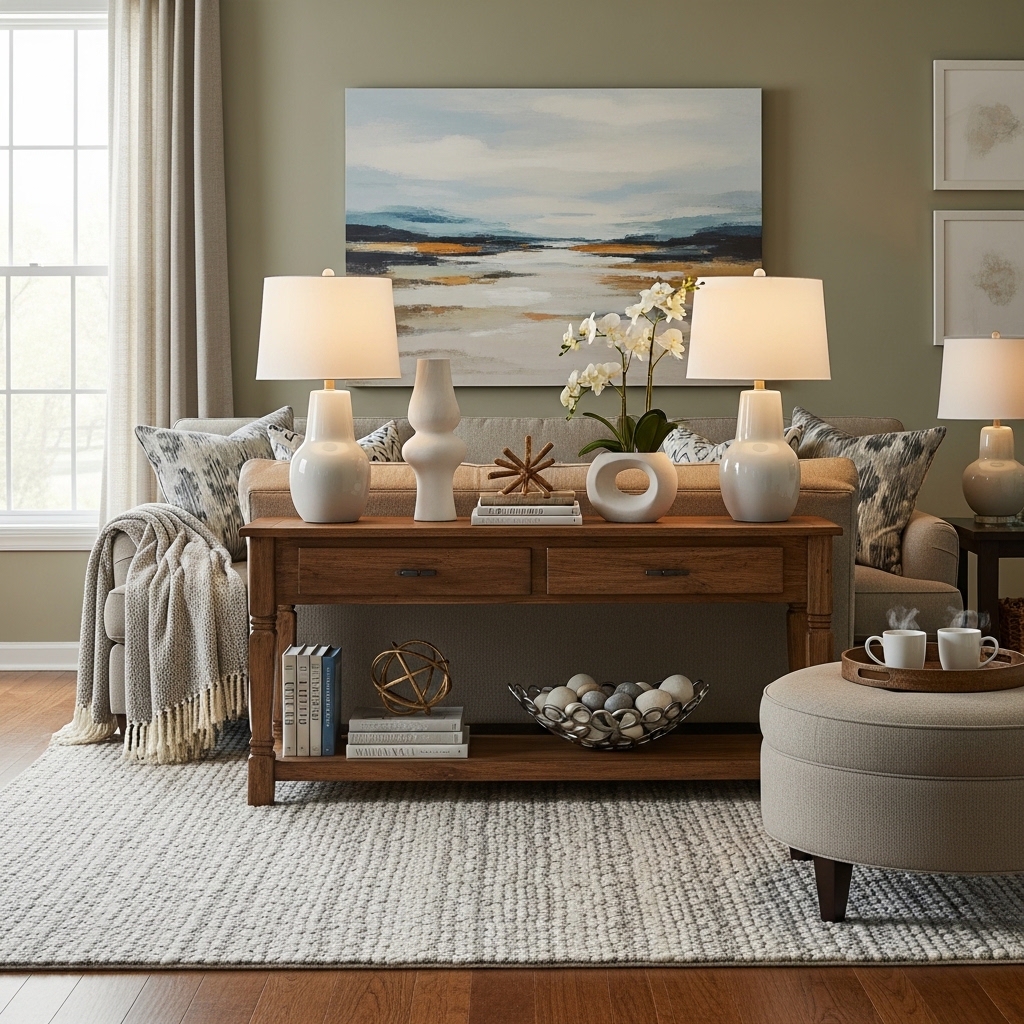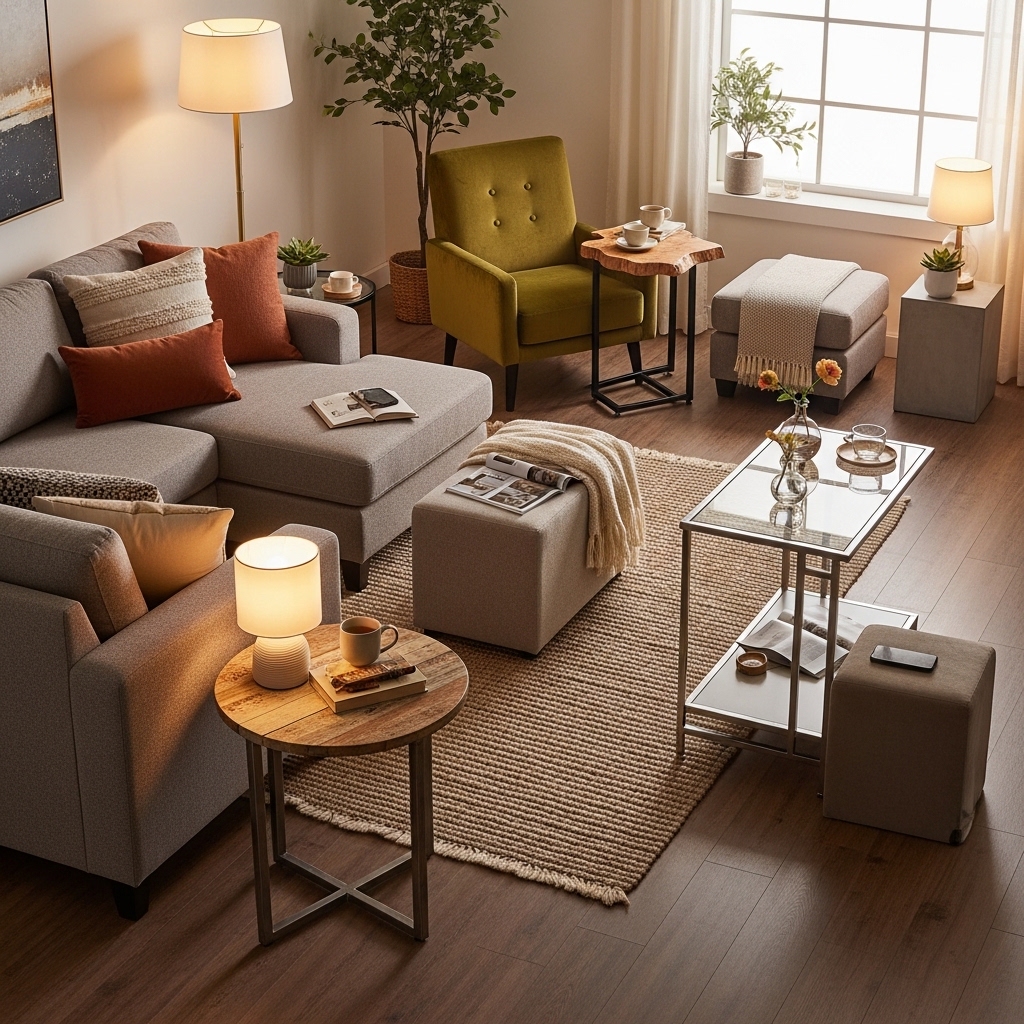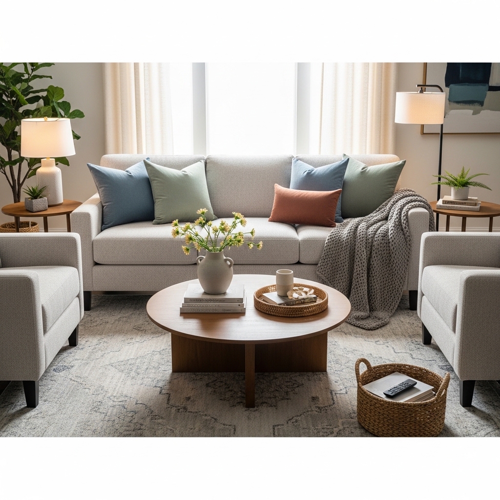 Pro Tip: Pull the accent color from a pillow or rug. The repetition creates cohesion.