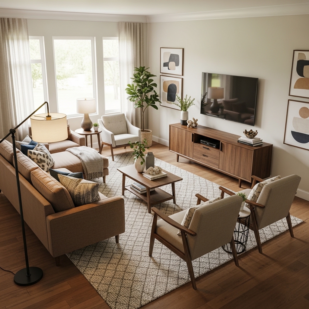 Mistake to Avoid: Do not choose a sofa deeper than 24 inches for a conversation-focused room. Guests will recline instead of talk.