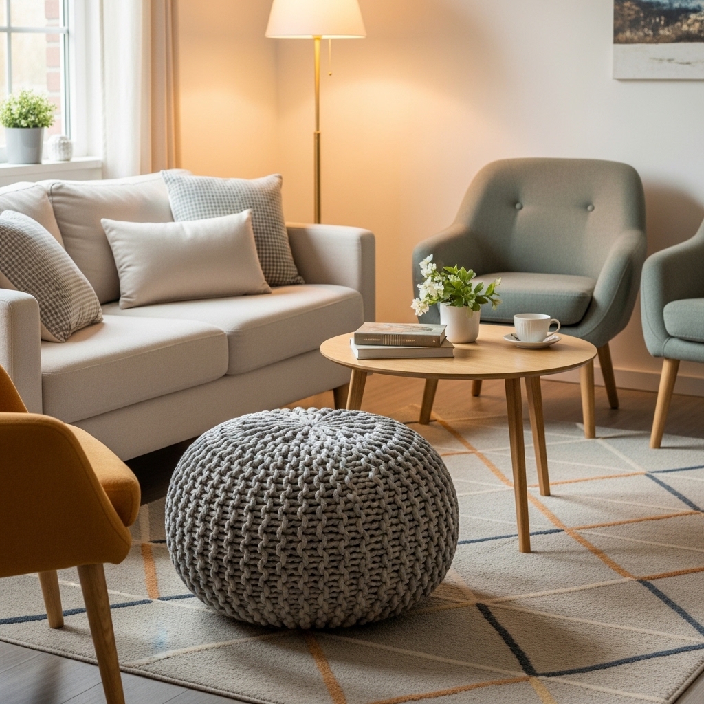 Mistake to Avoid: Do not use a pouf as a primary coffee table. It is too unstable.