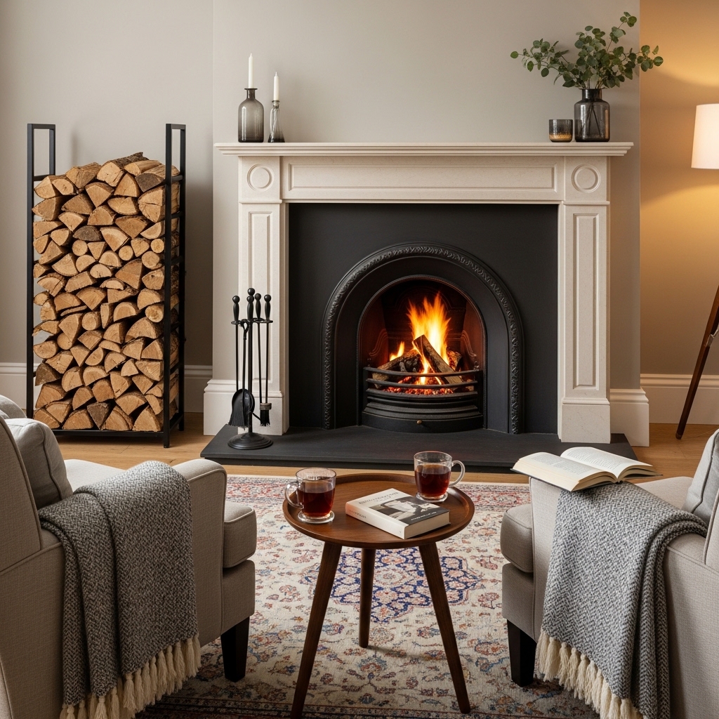 18. Add a Firewood Rack Near the Fireplace