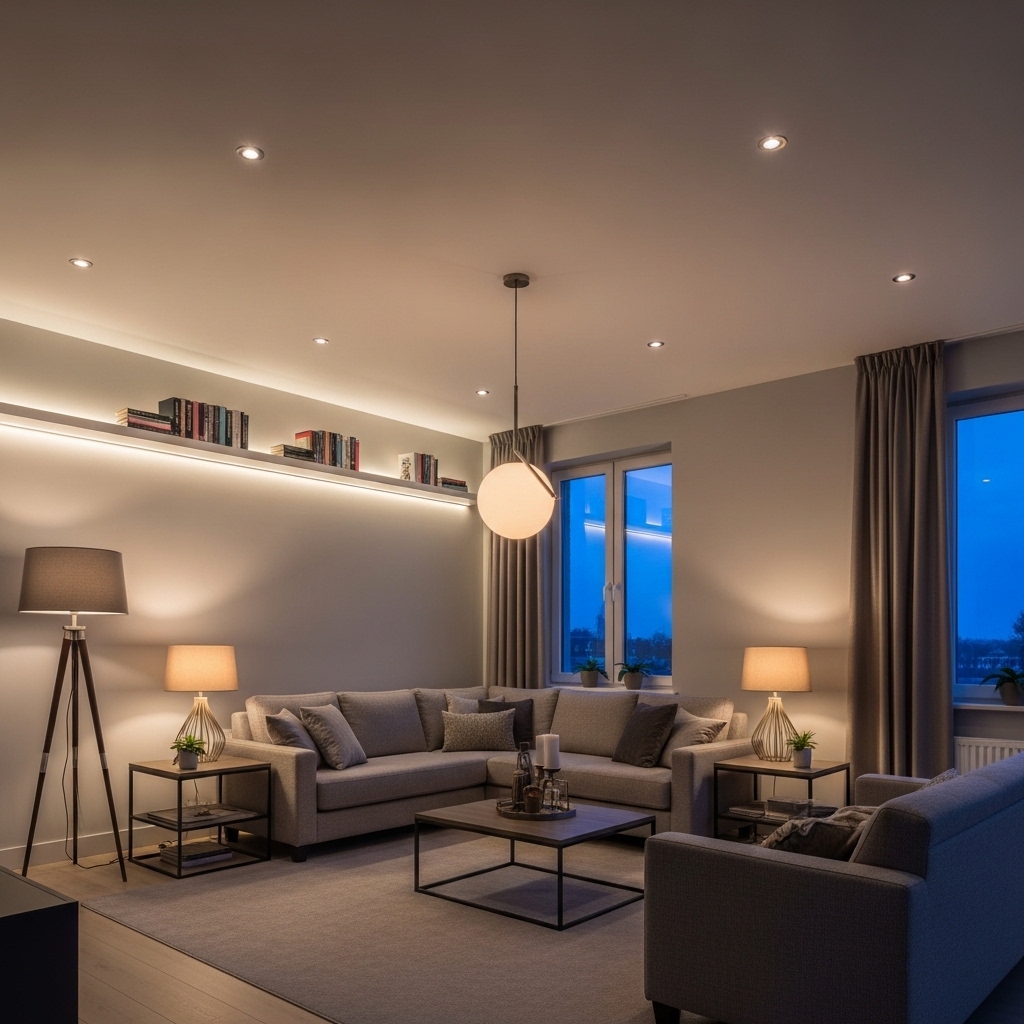 Layered lighting combines multiple sourcesโ€”ambient, task, and accentโ€”to create depth. This setup allows you to adjust brightness depending on time and activity.