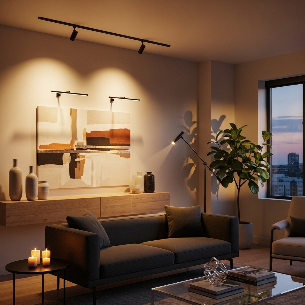 How to apply: Use spotlights or picture lights for artwork. Keep brightness subtle.
