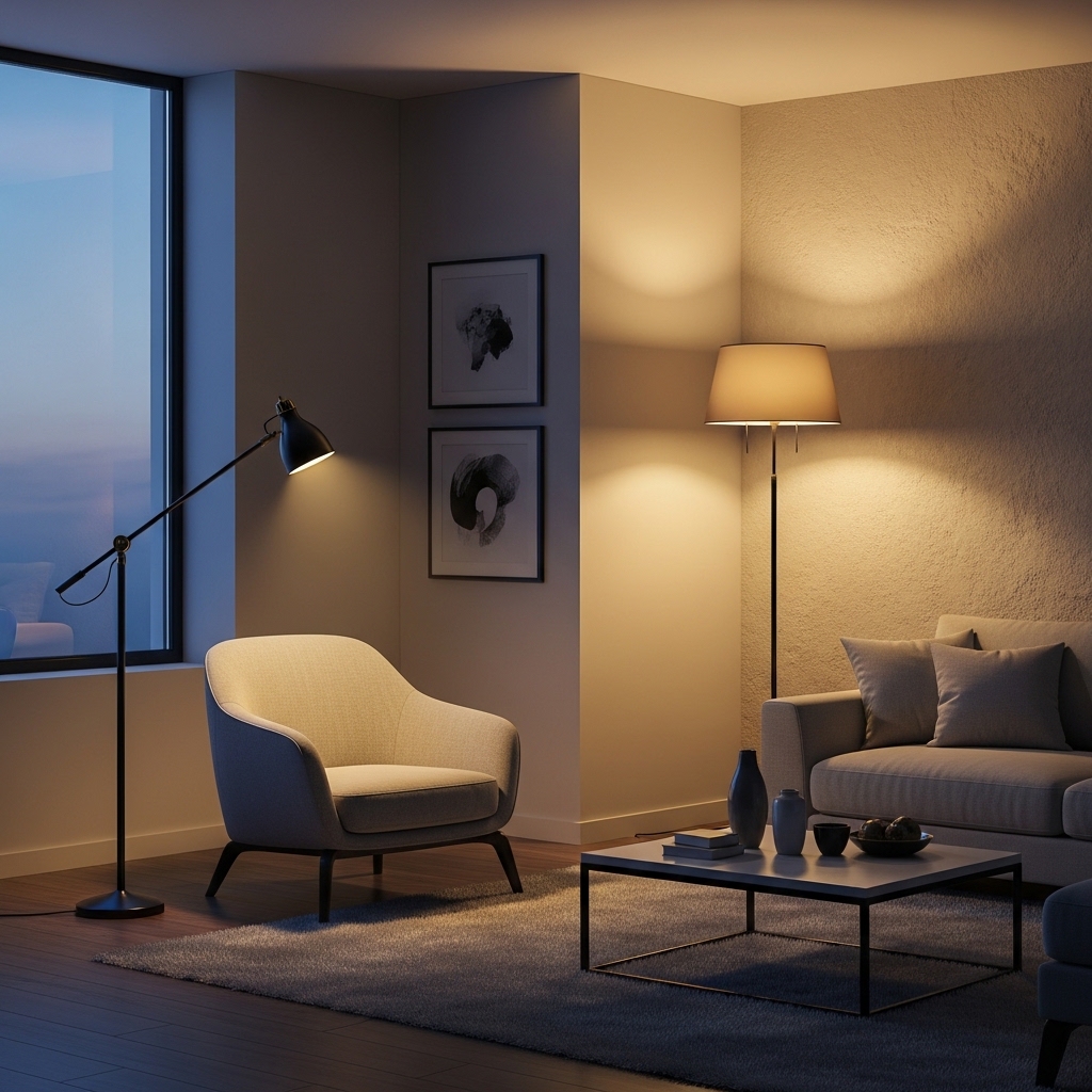 How to apply: Place beside sofas or reading chairs. Use lamps with shades to diffuse light evenly.