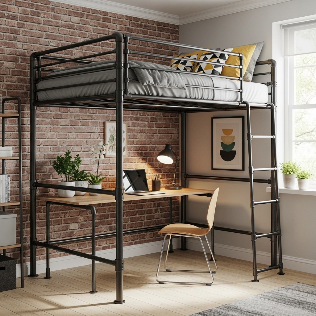 5. Industrial Metal Loft Bed for Modern Style