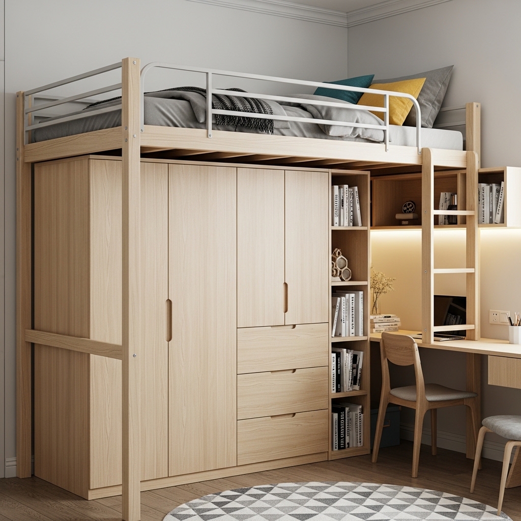 A custom-built loft bed is the best option for maximizing every inch of a small room. It can be designed to fit specific dimensions and include storage, desks, or seating.