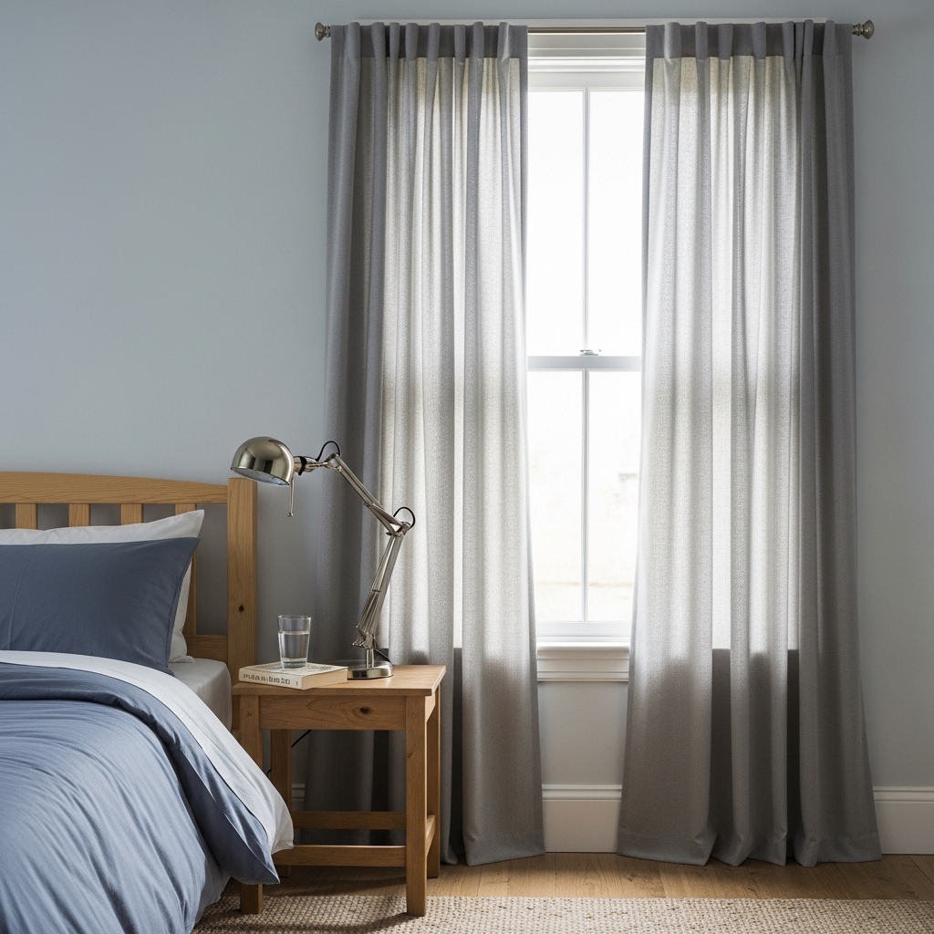 Curtains can improve both privacy and style in a bedroom. Dark or neutral curtains complement masculine decor themes.