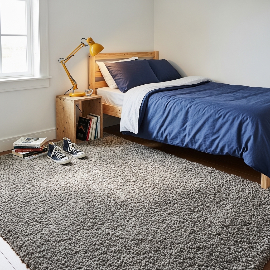 A simple rug can make a bedroom feel more comfortable and visually complete. Even a small rug placed beside the bed adds warmth and texture.