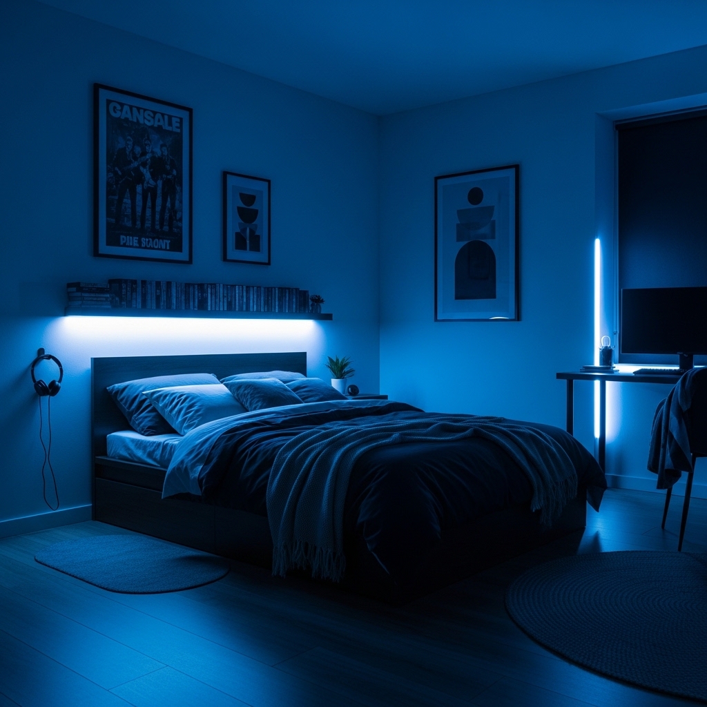LED strip lights are an inexpensive way to upgrade a bedroom. They can be placed behind the bed frame, under shelves, or along the ceiling to create a modern atmosphere.