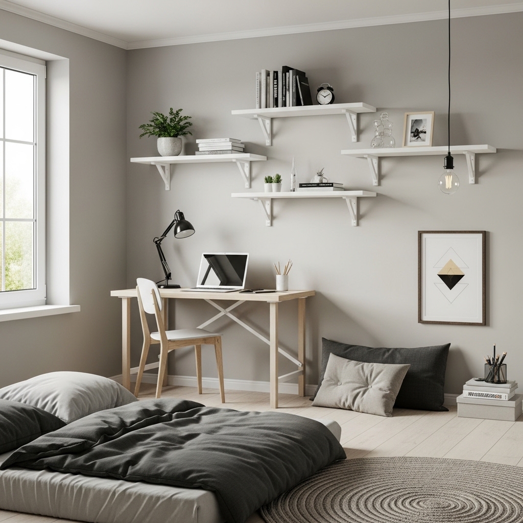 Floating shelves provide storage without taking up floor space. They are perfect for displaying books, small plants, or decorative items.