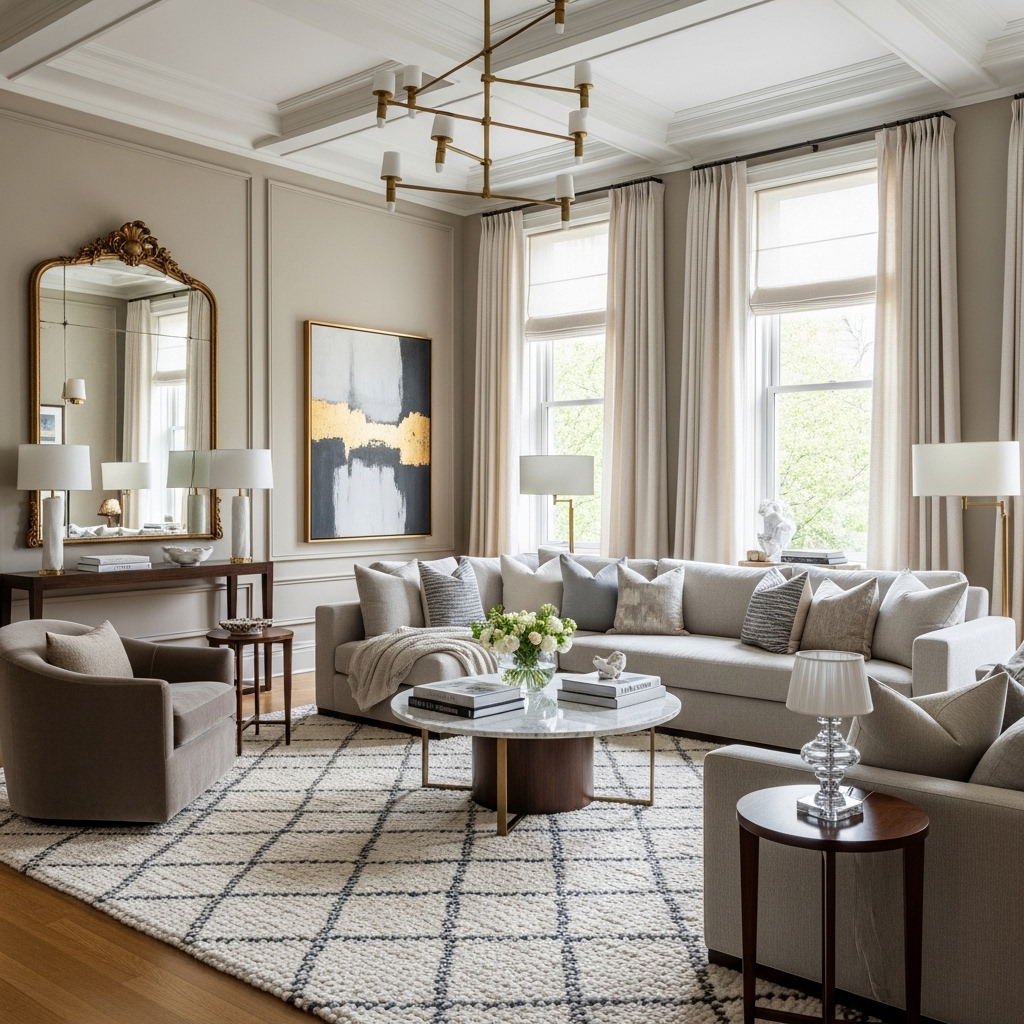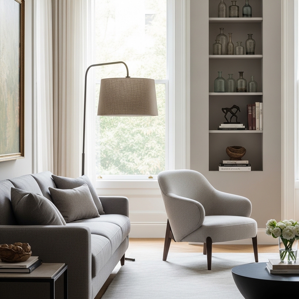 Pro Tip: Use tonal variation (light + mid + dark neutrals) to create dimension without clutter.