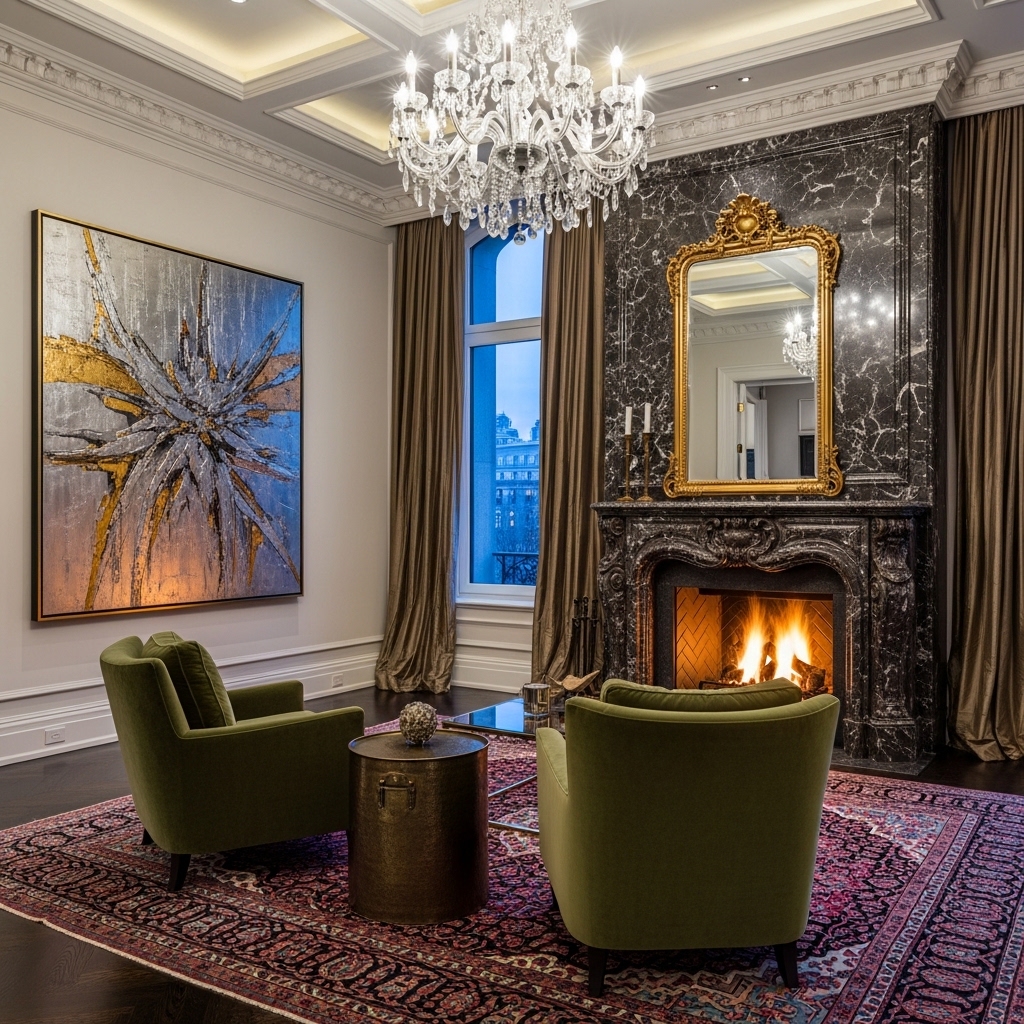 Every luxury living room has a clear focal point—whether it’s a fireplace, feature wall, or oversized artwork.