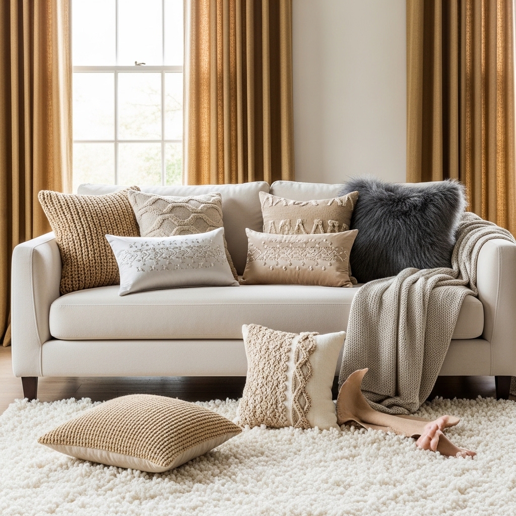 Pro Tip: Mix smooth and textured fabrics for balance.