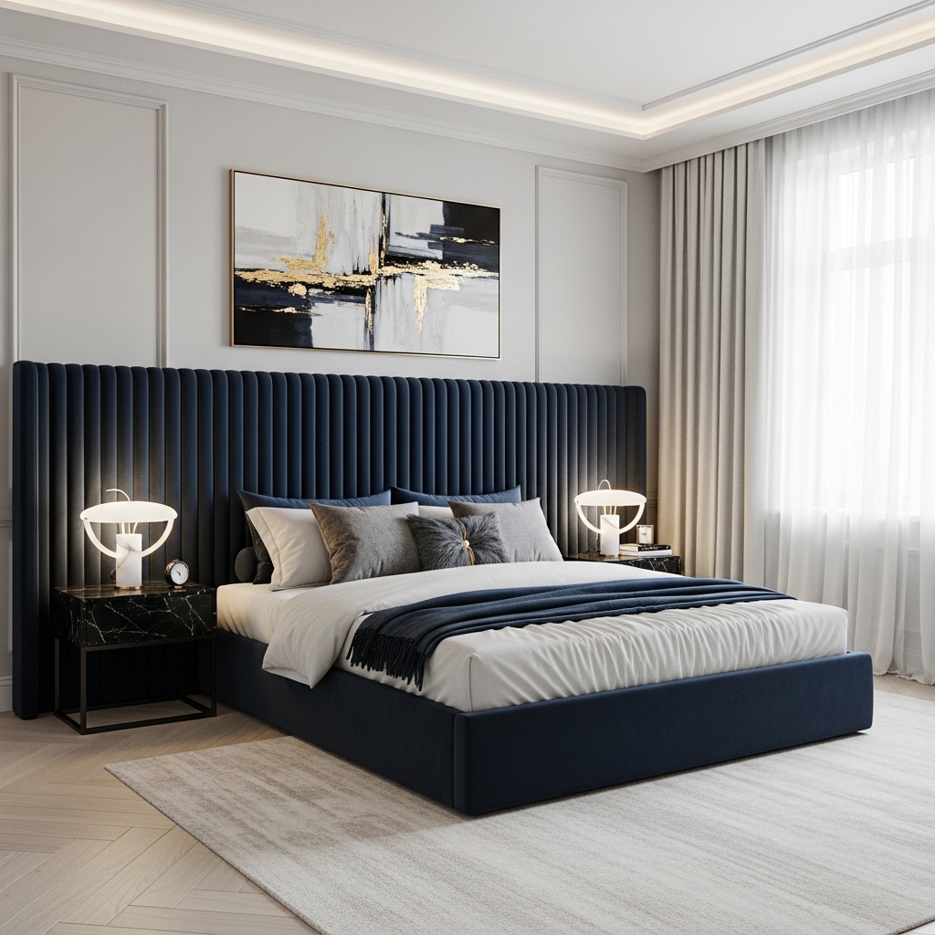 These headboards often extend higher than traditional ones, emphasizing vertical space and making the room feel more luxurious.