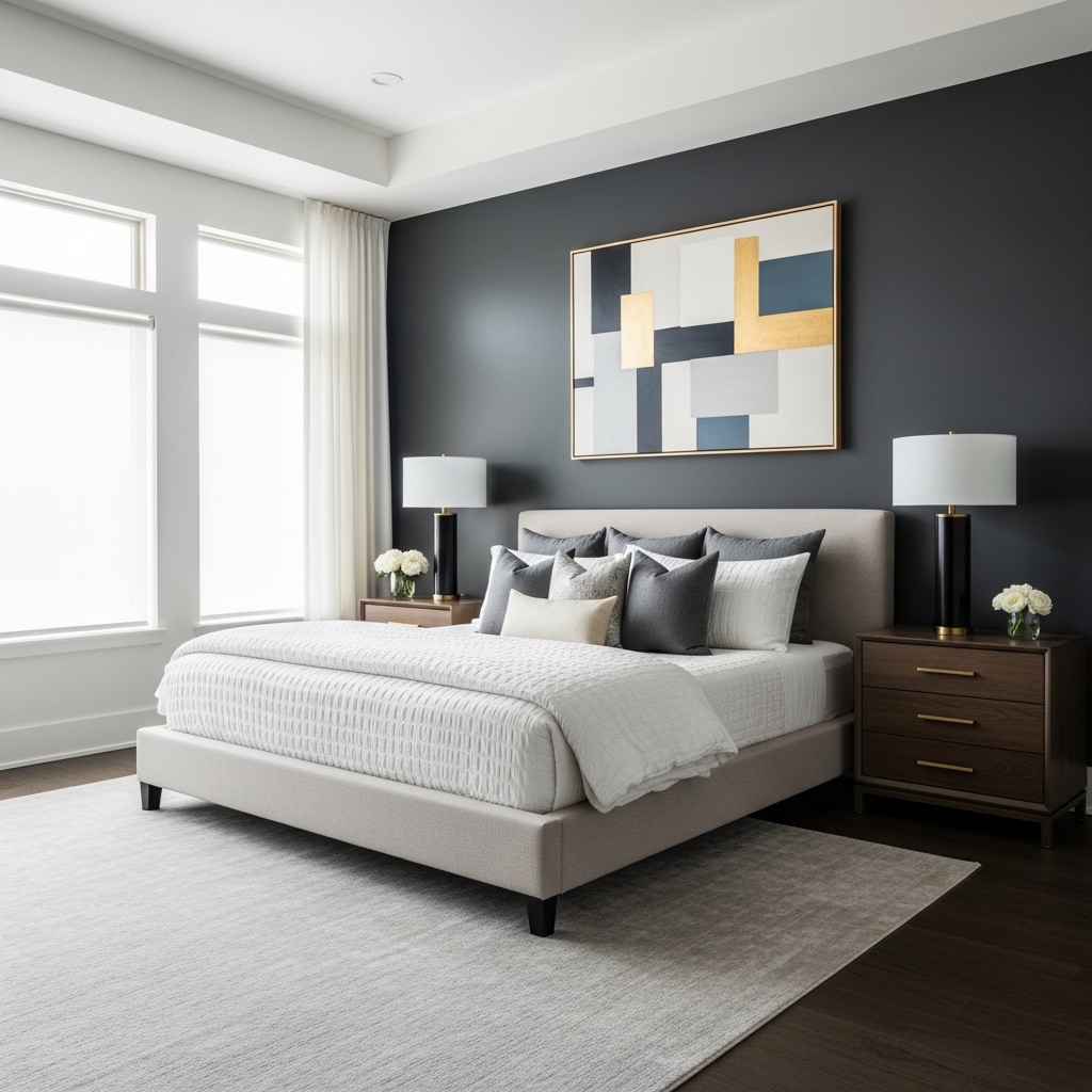 Artwork also helps balance the neutral tones often used in luxury bedroom interiors. Carefully chosen pieces can tie together the color palette and decor elements throughout the room.