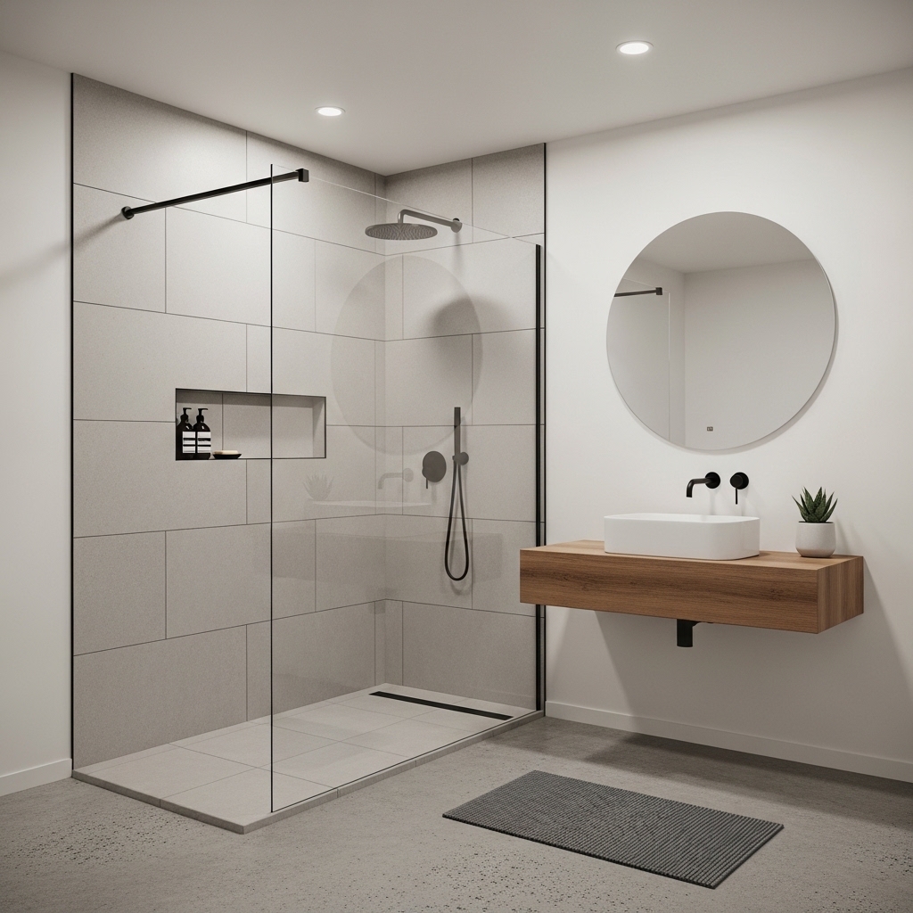 5. Walk-In Shower with Minimal Glass Panel