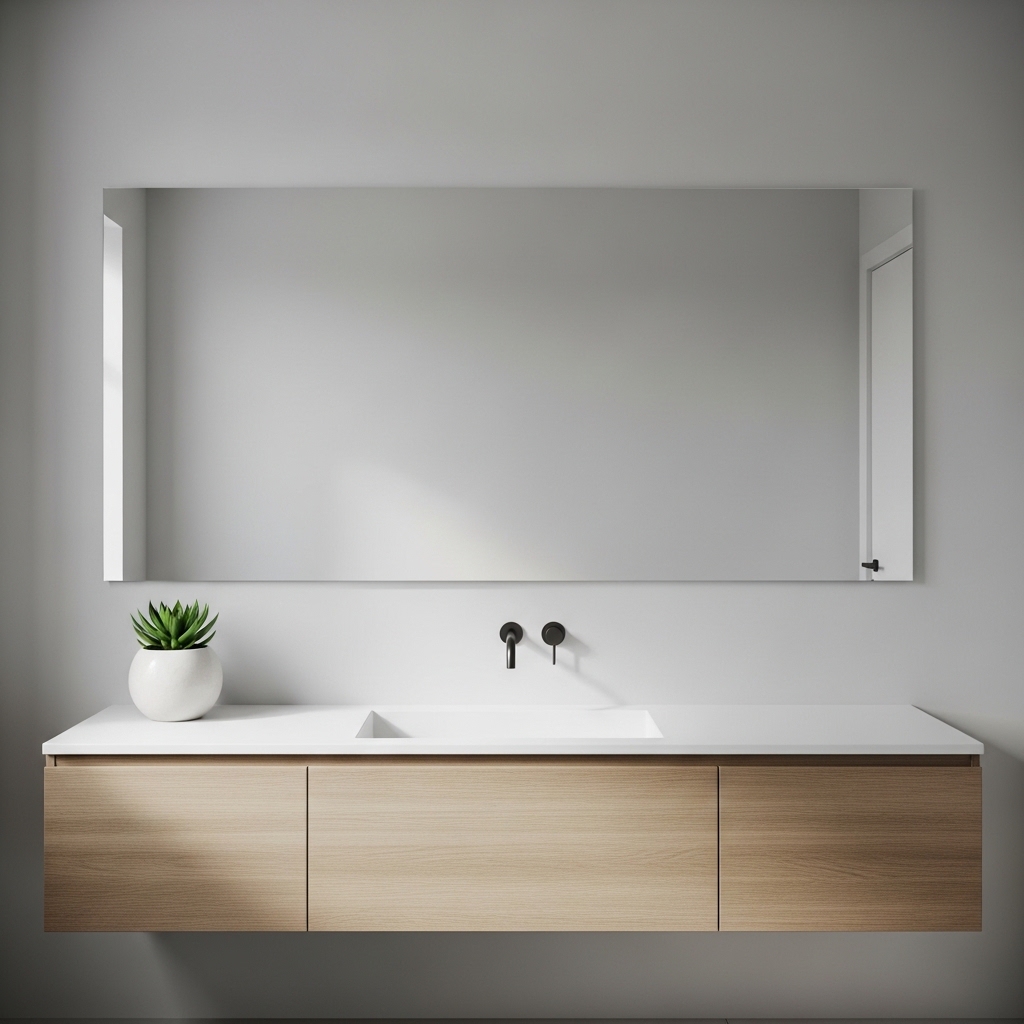 A frameless mirror blends into the wall and keeps the design clean. Choose a size that aligns with your vanity width.
