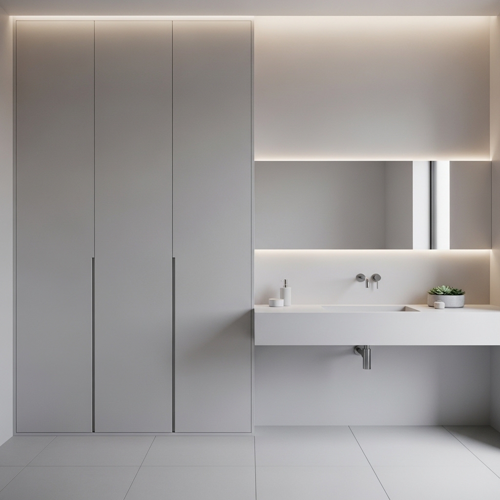 Pro Tip: Match cabinet color exactly to the wall.