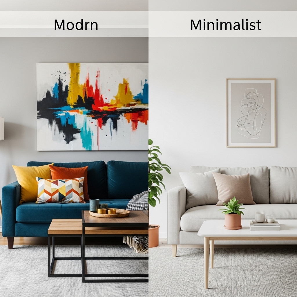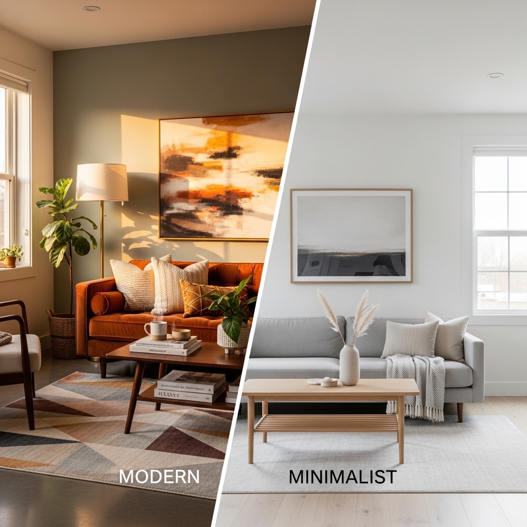 Pro Tip: If you want a warm, livable space, choose modern. If you prefer a gallery-like atmosphere, choose minimalist.