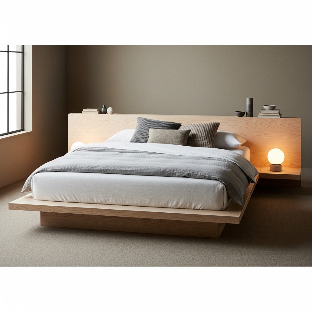 Pro Tip: Use a bed frame with built-in nightstands. The cantilevered shelves float beside the bed.