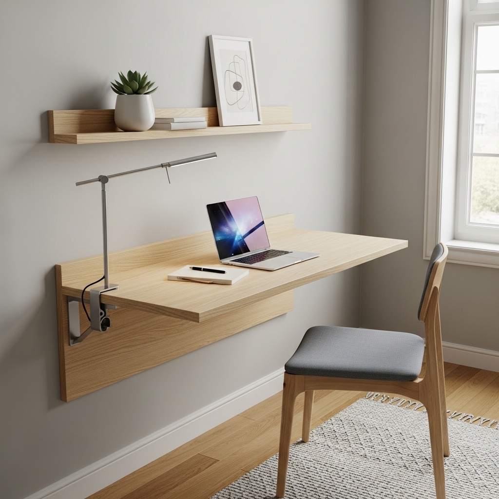 A desk on legs takes floor space. A wall-mounted desk does not.