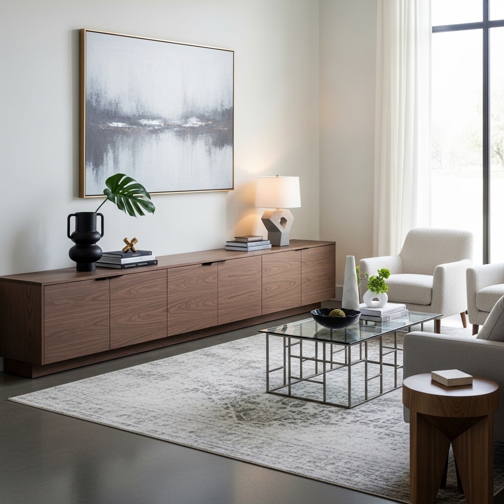 Mistake to Avoid: Do not choose a credenza with visible hardware. Hidden hinges are cleaner.