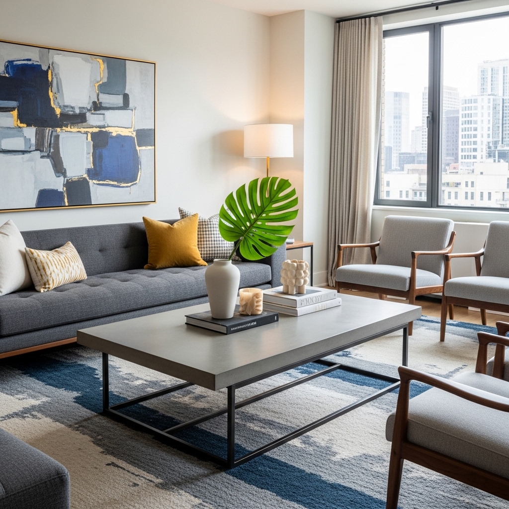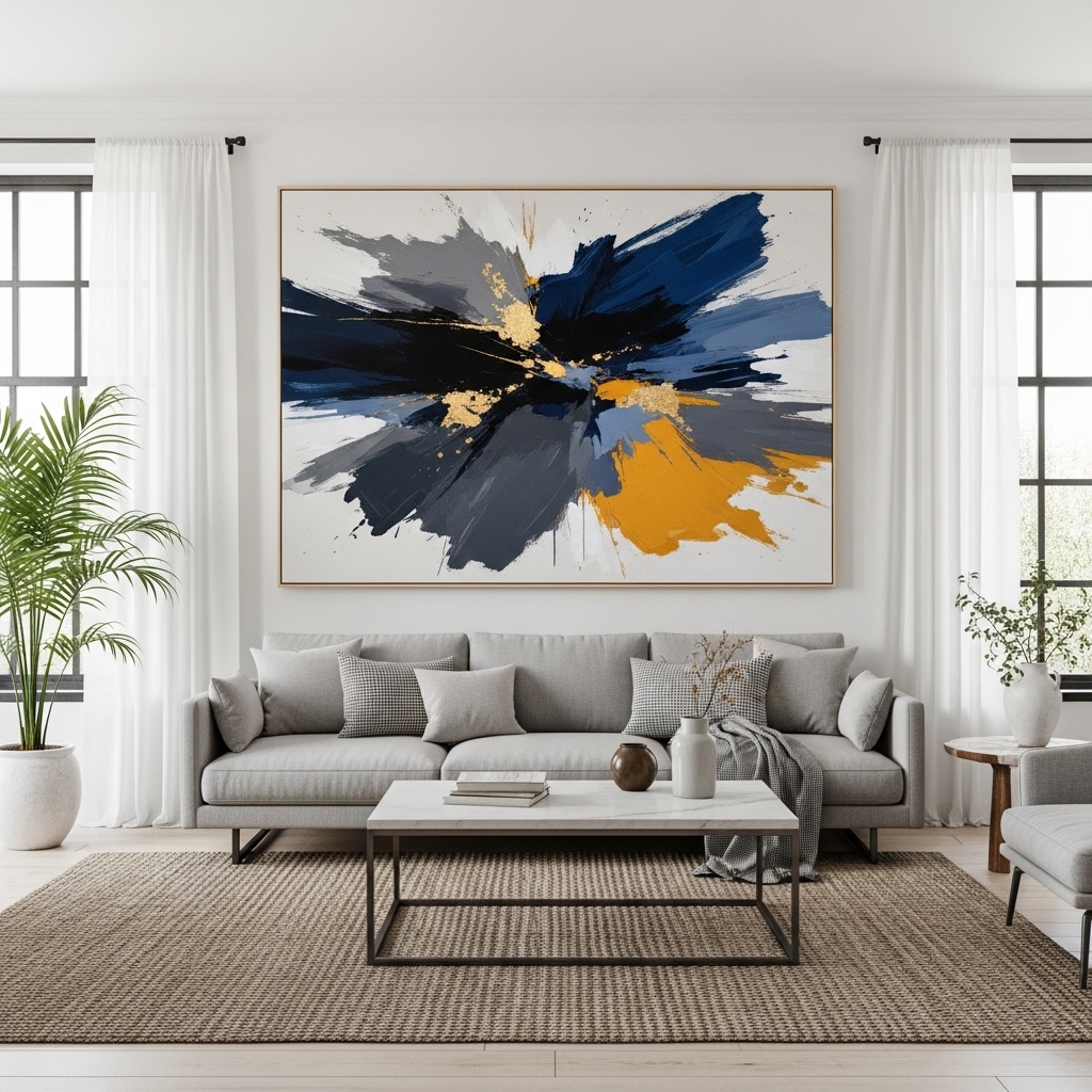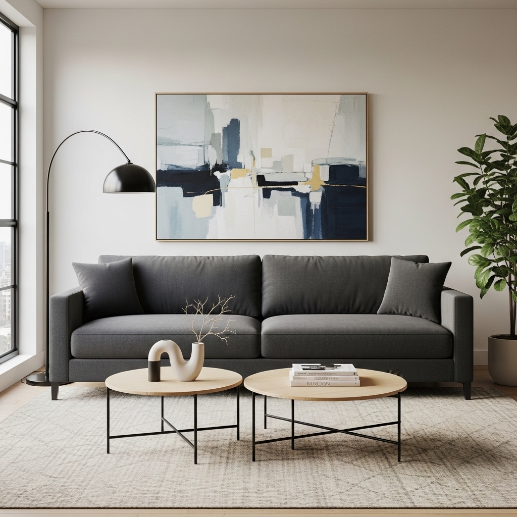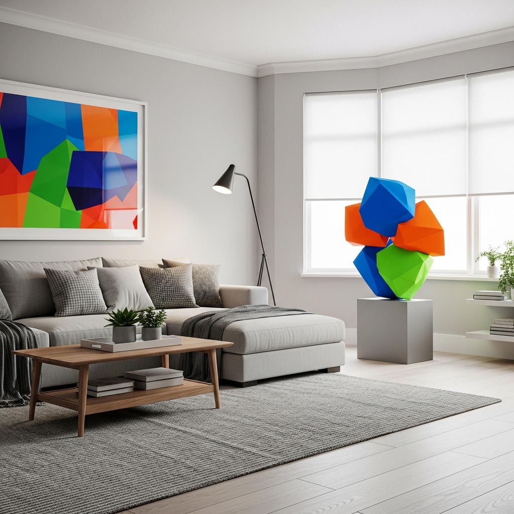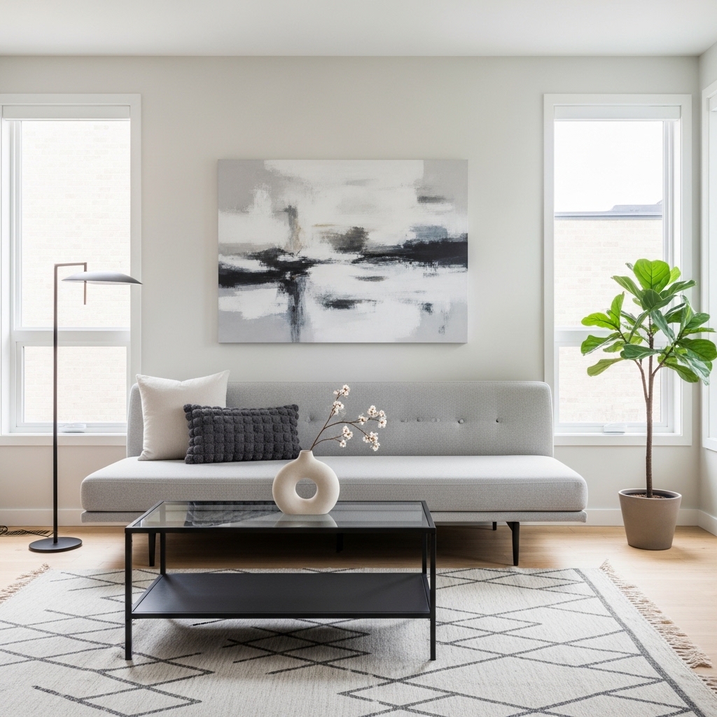 Large-scale artwork adds personality without cluttering the space. Abstract designs work best in modern interiors.