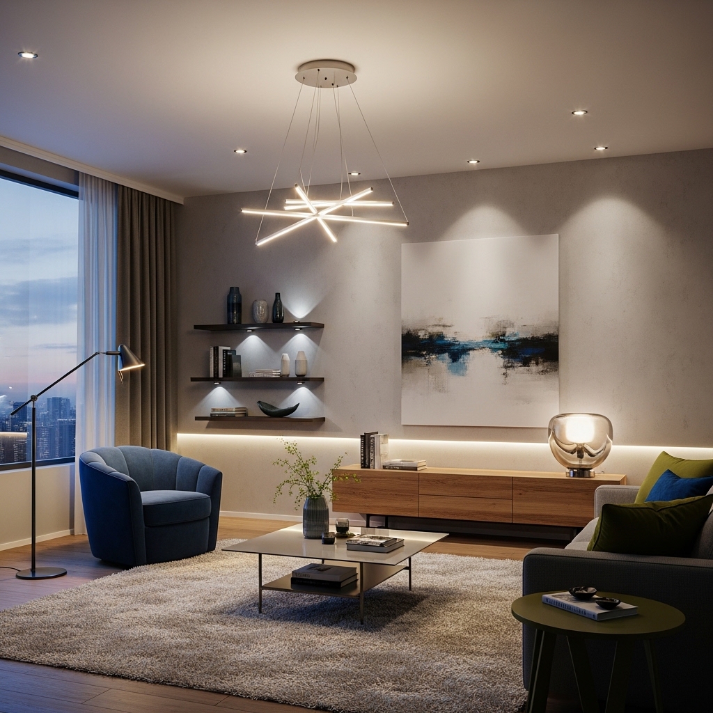 Pro Tip: Stick to warm white lighting (2700K–3000K) for a cozy modern vibe.
