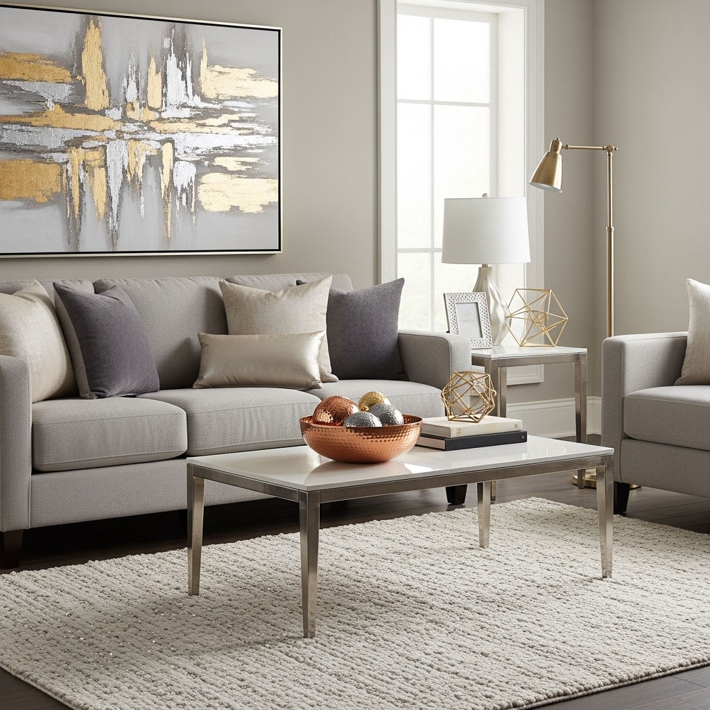 Gold, brass, or matte black accents add a refined, modern touch. Use them in lighting, frames, or small decor pieces.