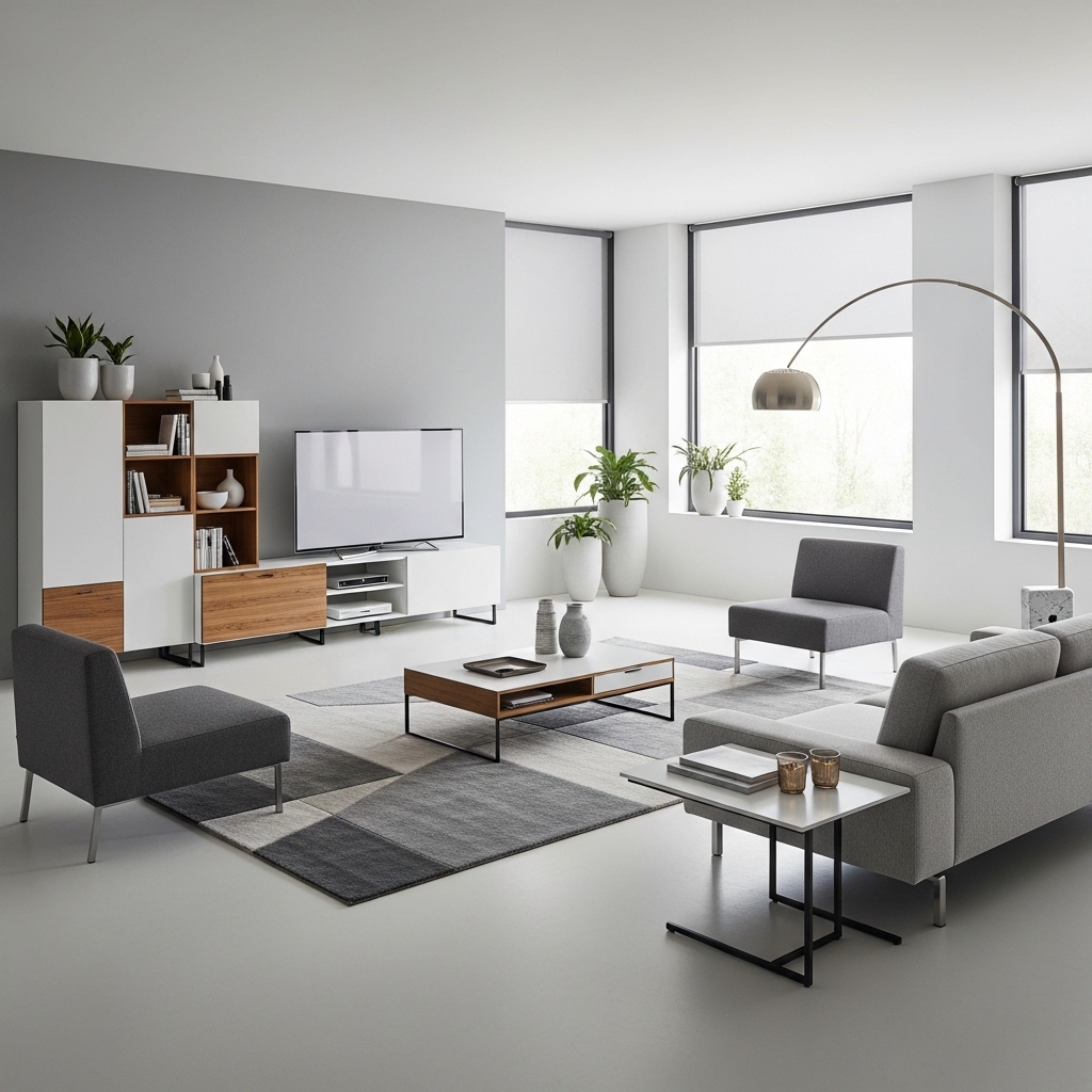 In modern living room decor, rugs often feature subtle patterns or neutral tones to maintain a clean look.