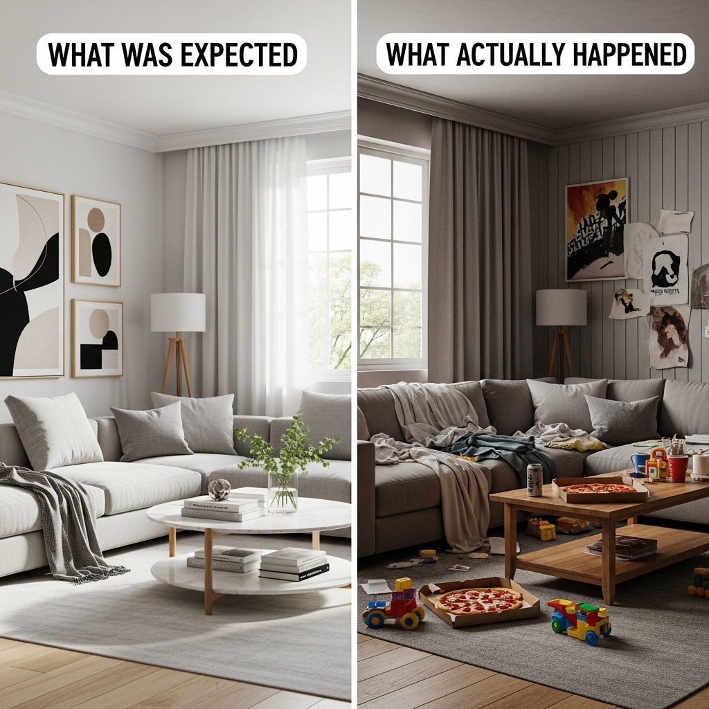 Actual: Guests noticed the apartment felt calmer and more open. No one said it felt empty.
