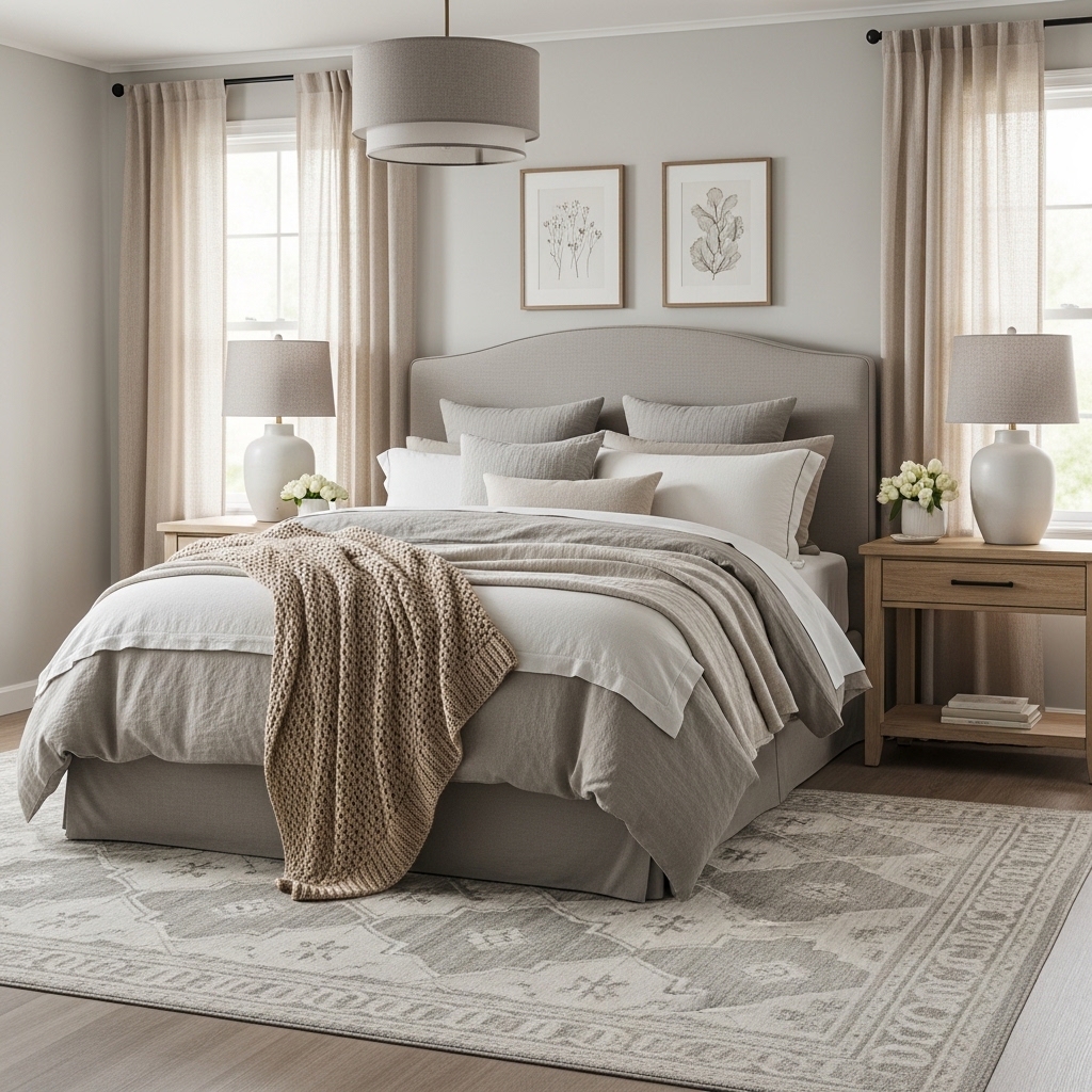This combination is ideal for elegant neutral bedroom decor because it blends warmth and sophistication seamlessly. It works well with both modern and classic interiors.